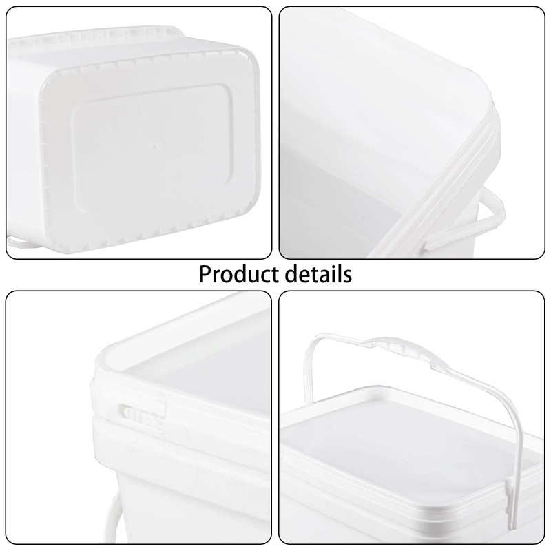 Yesdate 4 Pcs 3 Gallon Rectangle Food Grade Bucket Pail with Airtight Lid, All Purpose Buckets for Storing Dry Food Camping Fishing (White)