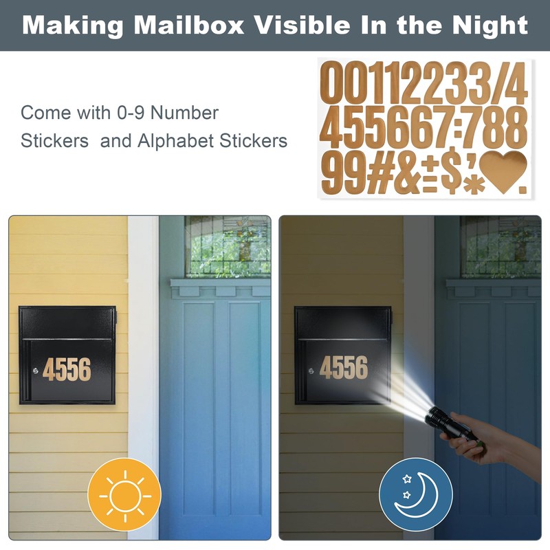 - Flag Kit & Number Stickers: The included red flag can be raised up to remind the postal carrier that you have outgoing mails. Also, this wall-mounted mailbox comes with number and letter stickers for easy identification of your mailbox