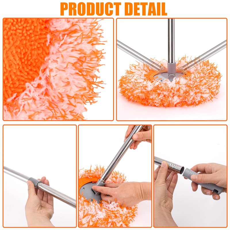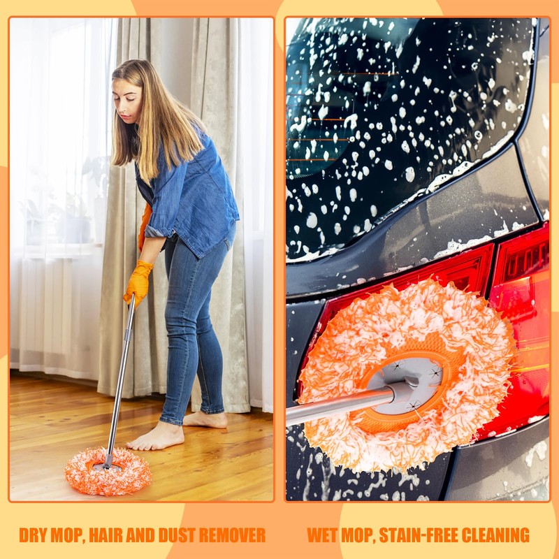 • The cleaning mop perfect for all types of surface such as floors and glass window as wet mop. The multi adjustable handle rod design can make cleaning tasks easier and more effortless. They can be used as spin mop for the wall and ceiling, corners to clean the dust and pet hair. And this baseboard cleaner tool can make the car washing process efficient.