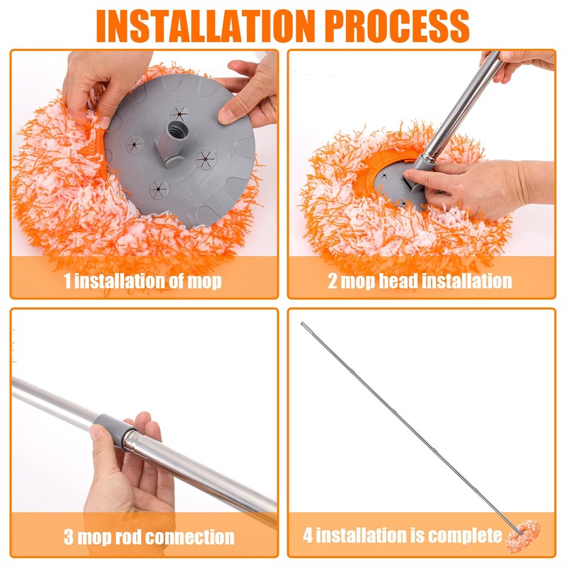 • This mop head can rotate 160 degrees to clean any corner, especially for dead ends and deep gaps. Great for the cleaning of the ceiling, sofa bottom, etc. Also it can be used to clean bathtubs, toilet surfaces and backs. Kindly note it is not suggested to rotate 360 degrees and spin in the bucket.