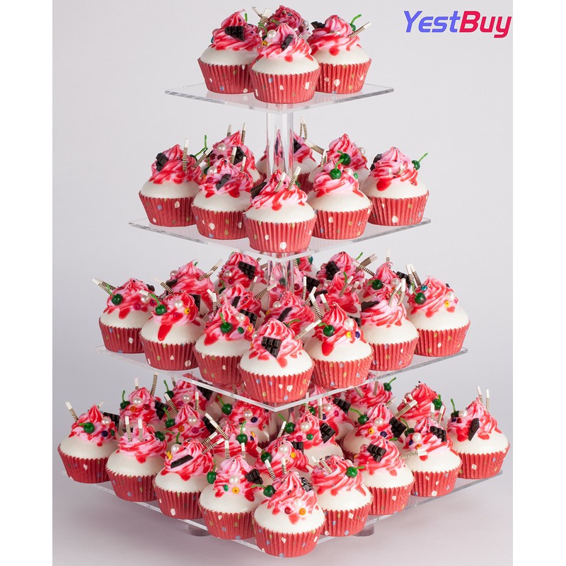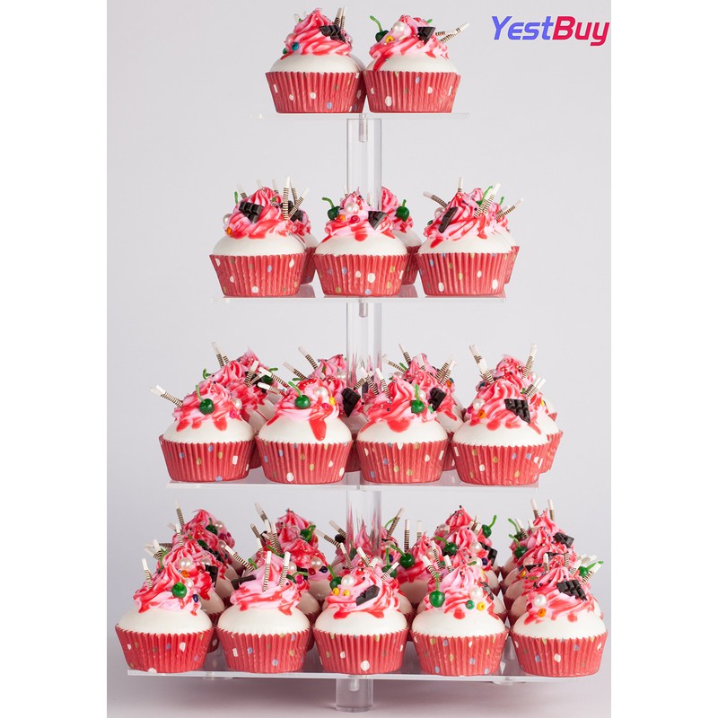 YestBuy 4 Tier Acrylic Cupcake Stand with Base, Premium Cupcake Holder, Acrylic Cupcake Tower Display Cady Bar Party Décor – Display for Pastry(4.7" Between 2 Layers)…