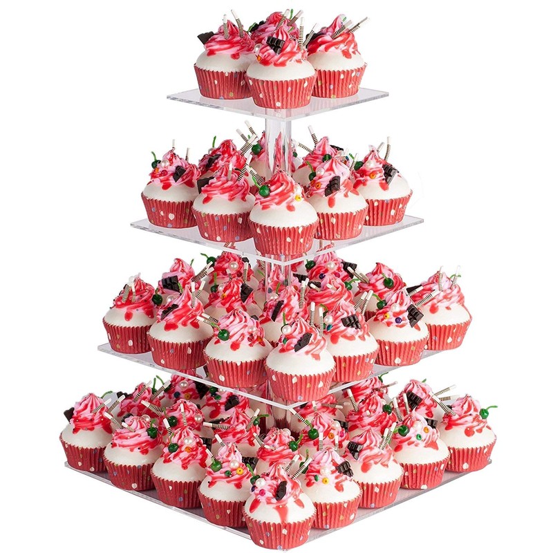 - 【IMPRESSIVE DETAILS】 By using Acrylic Rod with Screws instead of Tube to make this cupcake stand straight and stable, The cupcakes stand is extra large and can hold up to 28 cakes of 2.5” diameter or the equivalent of 12 lb. of food.