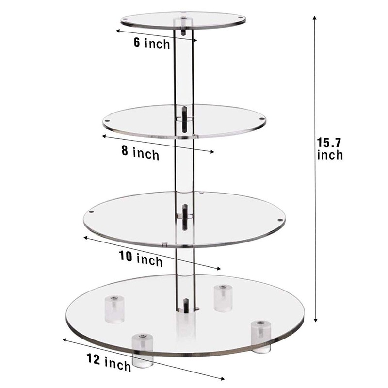 - PREMIUM DESIGN: Our cupcake stand has four acrylic plates with 4.7” distance between them. You can remove any of the superior plates and reassemble them freely. Each pastry rack is made with premium 4 mm thick acrylic, being very durable and resistant.