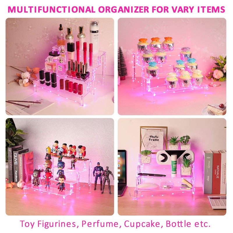 - Multifunctional Design: This 4-step acrylic riser has wide applications in your store, boutique, bakery or home, being ideal for displaying anything from cupcakes, desserts, glassware, figurines, perfumes, cosmetics, makeup accessories, jewelry and more!