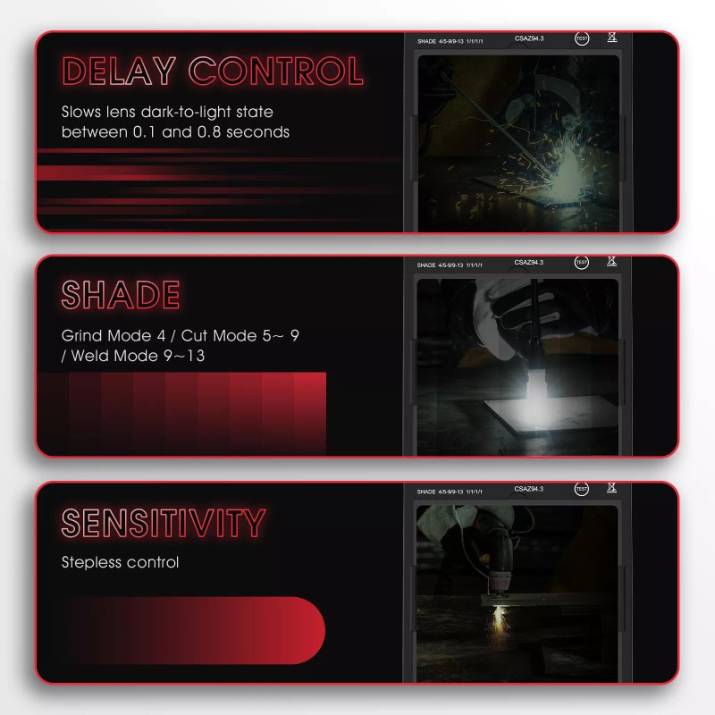 YESWELDER Auto Darkening Welding Helmet, 4 Arc Sensor for TIG MIG Arc Weld Grinding