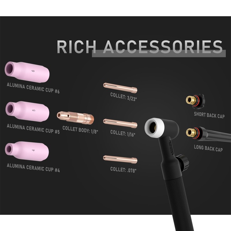 YESWELDER YESWELDER Tig Welding Torch WP-17FV(Gas-Valve Head) Flexible Head Air-Cooled TIG Complete Torch with 12ft Cable