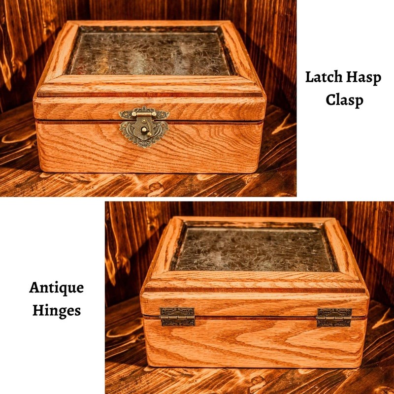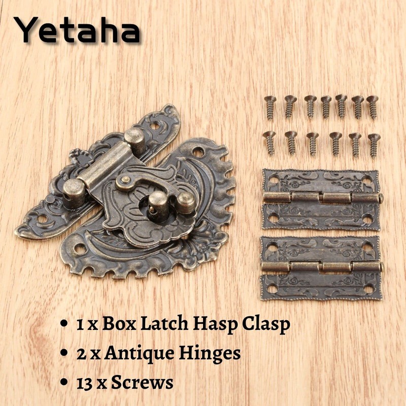 Durable and easy to install. Nice decorative hinges and Latch Hasp Clasp. This Latch Hasp Clasp will go well with your vintage jewelry chest, suitcase and other box. An ideal hardware for home, office, shop, and so on.
