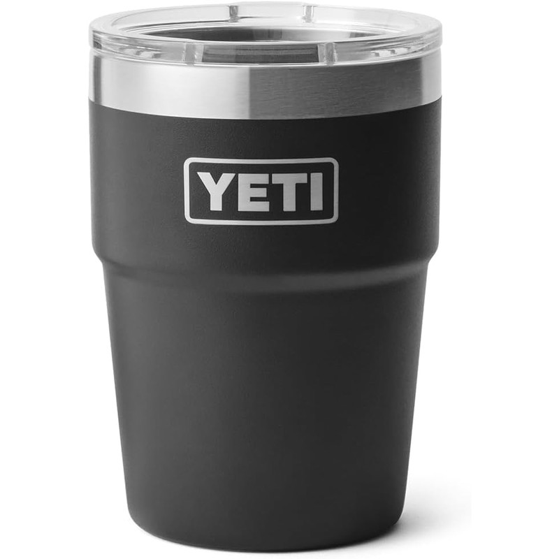 YETI Rambler Cup, Vacuum Insulated Stainless Steel Stackable Cup with Magslider Lid, Black, 16 oz (475 ml)