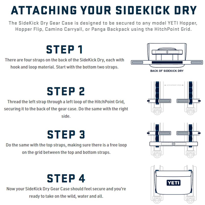 - The YETI Sidekick Dry 6L waterproof gear case is large enough for all your fly boxes, first aid kit, and a spare layer. Compatible with all Camino and Hopper products and the Panga Backpack
