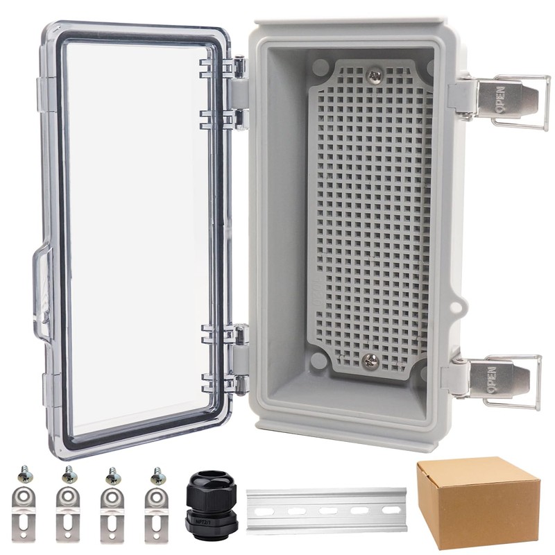 YETLEBOX Waterproof Electrical Box, IP67 Junction Box Stainless Steel Latch Hinged Clear Cover Project Enclosure with Wall Bracket 7.9"x3.9"x2.8"