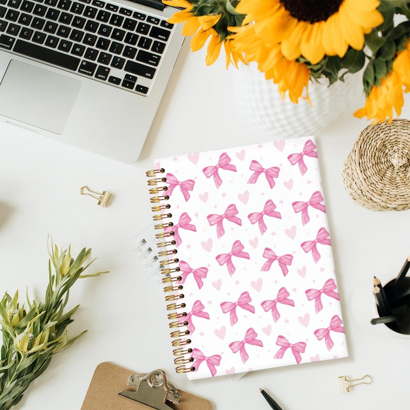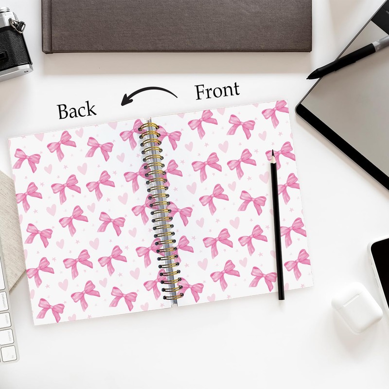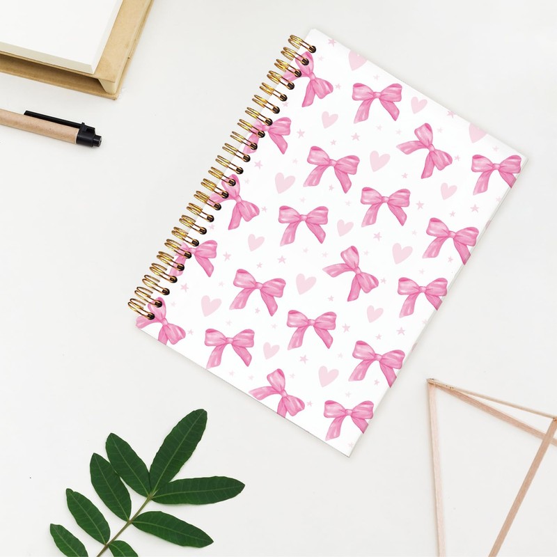 Yetmadi Pink Bow Heart Coquette Notebook Journal, Trendy Pink Bow Preppy Girly Office Supplies Notebook, Womens Journals for Writing, 5.5x8.3 Inch