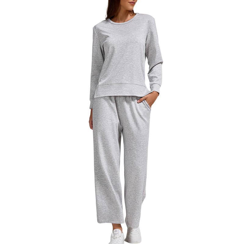 - **Chic Design** – Refresh your wardrobe with this chic two-piece set featuring a long-sleeve top and wide-leg 3/4 pants. The air layer fabric adds a contemporary touch to a classic silhouette.