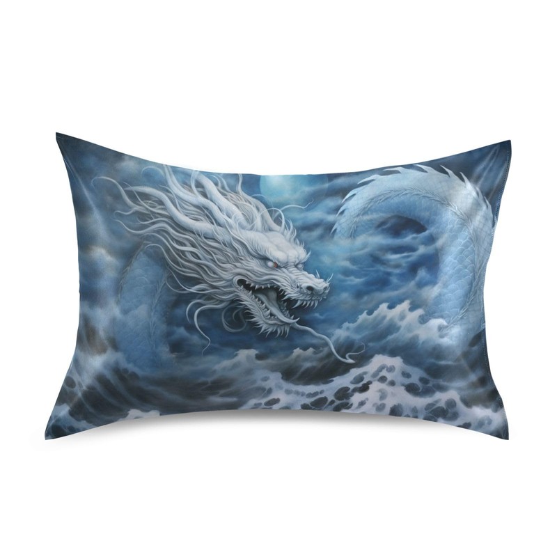 YETTASBIN Dragon Ocean Satin Pillowcase, Soft Breathable Silk Pillow Case with Envelope Closure for Hair and Skin, Standard Size 26 x 20 Inch, g334741993p567c603s1214