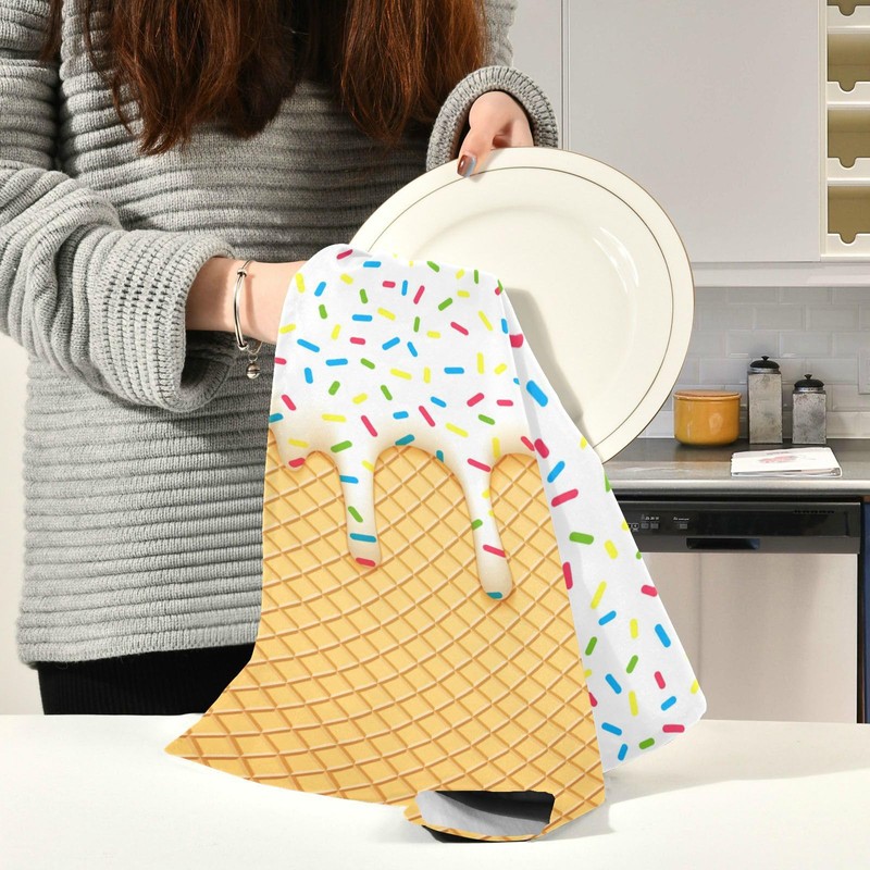 YETTASBIN Ice Cream Cone Kitchen Dish Towel 4 Pack, Soft Absorbent Dishcloths Reusable Hand Towel Washable Tea Towels for Home Kitchen Bar Table Decor, 28 x 18 Inch