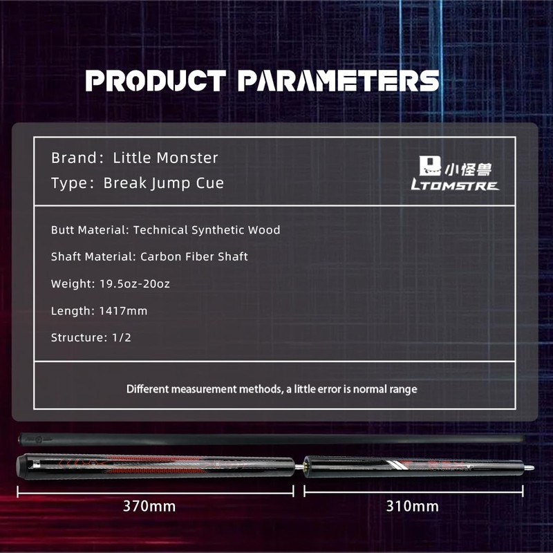 - Little Monster Break&Jump Cues with Quick Release Joint Easy to Pick it up or Removal,It comes an extra joint protectors and pu bag