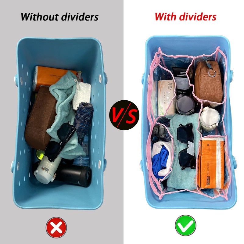 - GO ON TRAVEL - Ideal for traveling, beach trips, or everyday use, this bogg bag organizer insert will help you stay organized and keep track of your essentials.