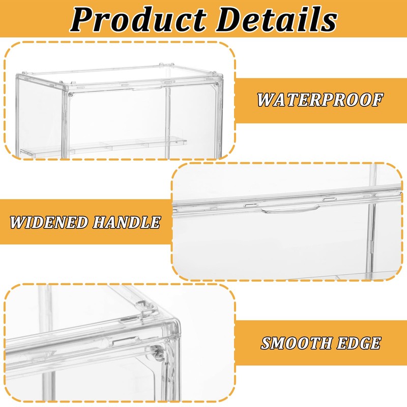 - Convenient Magnetic Door—The hobby display cases’ secure magnetic closure protects your items from dust while providing easy access. You can effortlessly open and close the clear stackable display box to store or display your action figures, models, and collectibles.