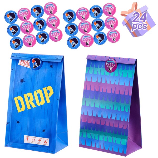 - Game Style: you will get 24 game theme gift bags and parachute stickers, including 12 sets of cases and 12 sets of sawtooth pattern design gift bags and parachute pattern stickers, suitable for birthday parties, game theme parties, and can meet the needs of e-sports players