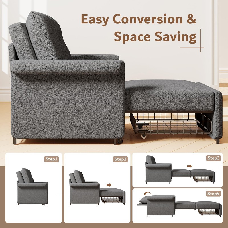 Yeyawomy Sofa Bed Chair, 3-in-1 Convertible Sleeper Chair with Storage Drawer, Lambswool Fabric Pull Out Couch with Adjustable Backrest, for Living Room Bedroom Office, Dark Gray