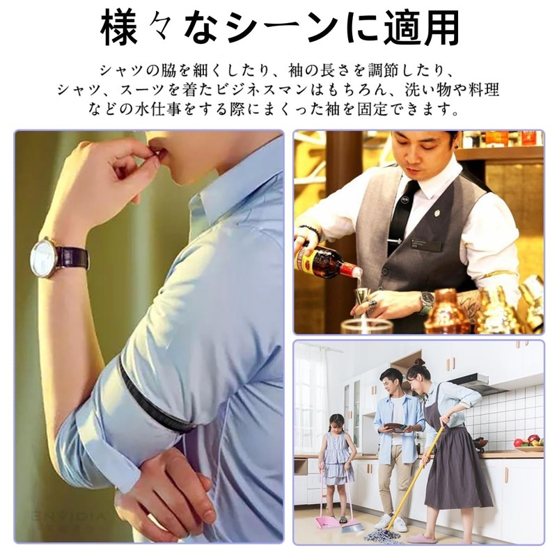 - ❤4.多用途 : シャツの脇を細くしたり、袖の長さを調節したり、シャツ、スーツを着たビジネスマンはもちろん、主婦にも便利です。洗い物や料理などの水仕事をする際にまくった袖を固定できます。快適に洗い物や掃除ができます。