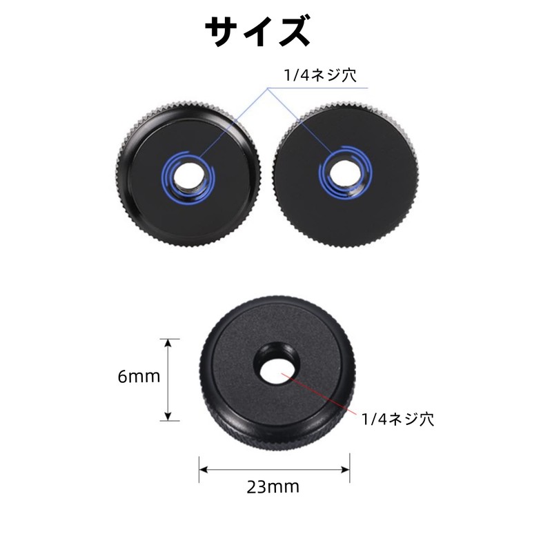 - (Set Contents) Lock nut adapters x 4, Size: 1/4" screw hole; Diameter 0.9 inch (23 mm), Thickness 0.2 inch (6 mm)