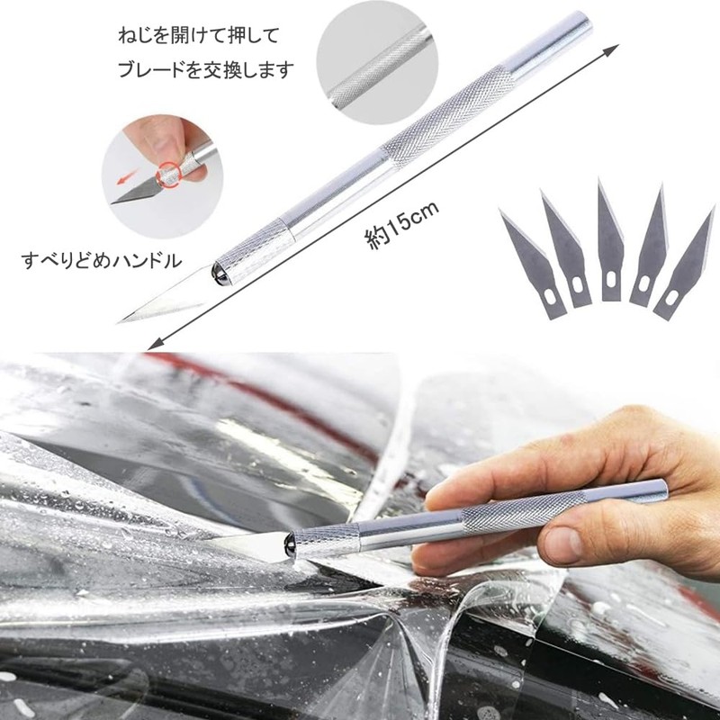 - 【Multi-function】1. Ultra-thin micro-squeegee head: stainless steel material, good grip feeling, more angle application 2. Blue Sticky Squeegee Wrapping Sheet Spatula can be used to apply film to narrow concave parts or curved edges or narrow gaps on the car. 3. Engraving knife x 1 (5 replacement blades) Comes with a cap for safe storage and is sharp enough to clean thin materials such as paper cutting, stickers and film