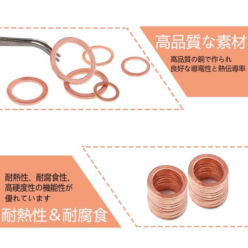 • 1. Made of high quality copper material, the gasket is a good accessory for bolt-on/leak-proof/mechanical load shattering, etc. Vibration reduction An indispensable fixing accessory for cars, homes and machinery shops