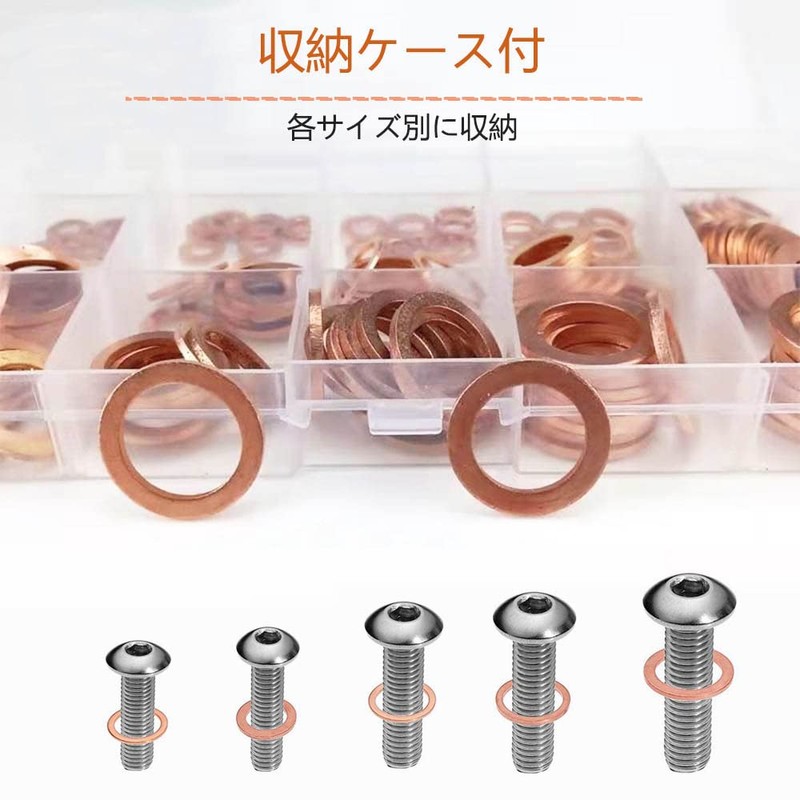 YFFSFDC Flat Washer, Copper Ring, M5, M6, M8, M10, M12, M14, Sealing Ring, Seal Gasket Set, Good Airtight, Corrosion Resistant, Durable, 200 pcs with Storage Case