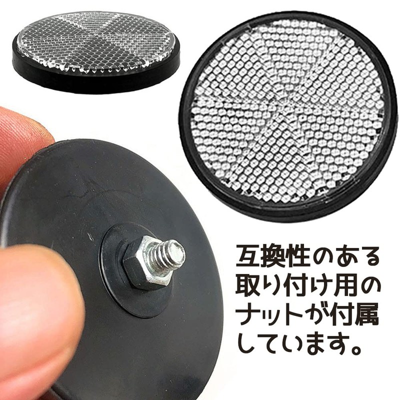• (Size) Diameter 2.2 inches (56 mm) x Thickness 0.4 inches Screw outer diameter 6mm 1 Pair Motorcycle Reflectors, 2 Nuts
