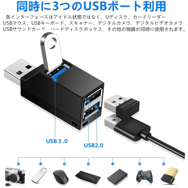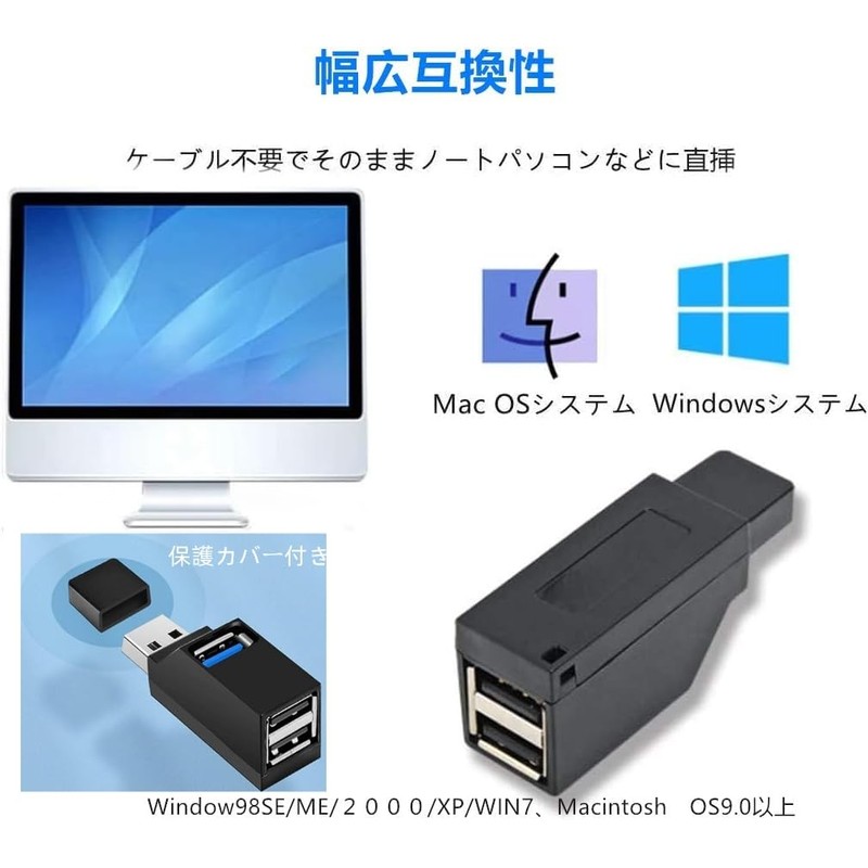 - 3. Directly plug: This 3-port USB hub can be plugged directly into your laptop, etc. without the need for a cable