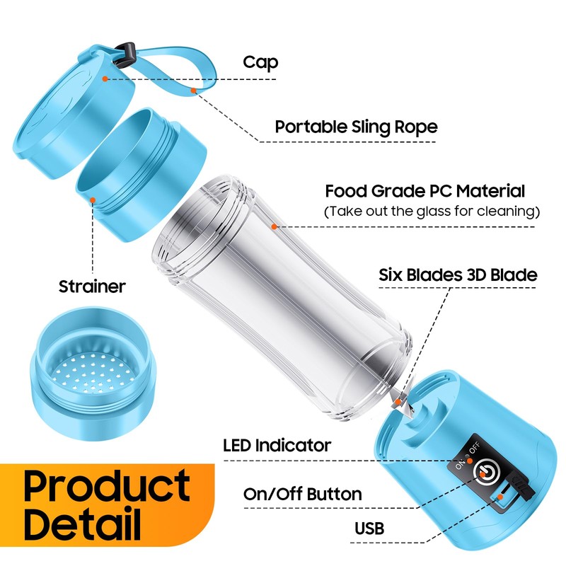 - 【Use The Steps Correctly】Step 1: Cut the fruit into small pieces and add to about 80% of the cup. Step 2: Add water or milk, otherwise it won't work properly. Step 3: Turn the machine upside down so that the blades are fully exposed. Step 4: Double-click the start switch. Step 5: Turn the blade for 1-2 seconds, then place the machine upright and shake the machine while juicing.