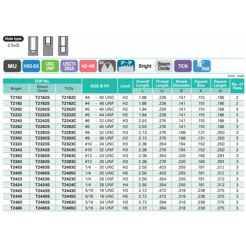 YG1 12-24 Spiral Flute Combo Tap T2363S 3 Flute H3 Steam Oxide Multi Purpose YG