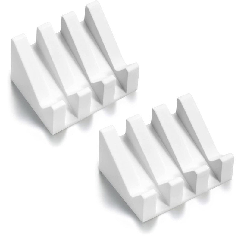 Ygapuzi Silicone Soap Dish with Drain for Shower Slanted Waterfall Bar Soap Holder Tray Easy Cleaning Soap Saver Mat for Sink Bathroom Kitchen Accessories, Extend Soap Life (White - 2Pack)