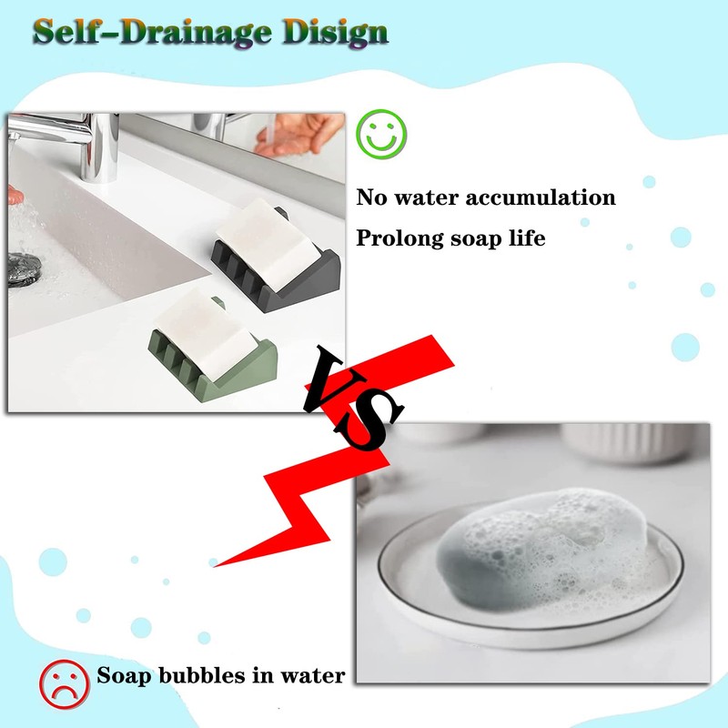 - 【Self-draining Design】: The sink sponge holder comes with a delicate slot design, which allows your soap to dry quickly, and water to drain away, providing a good place to store soap, and the soap saver is suitable for most shapes of soap.