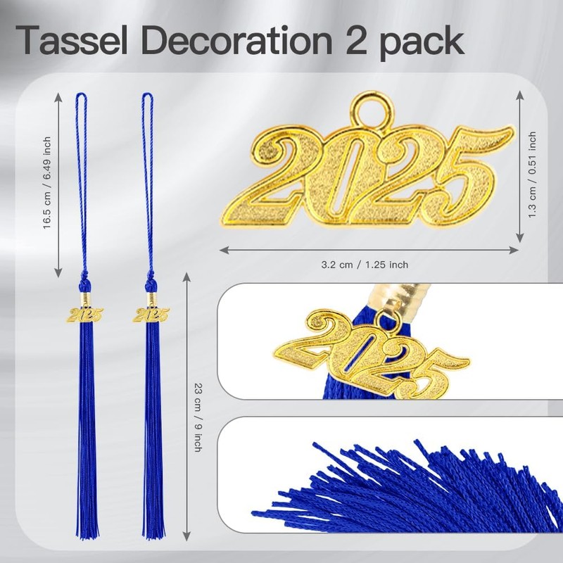 YGAUZ 2025 Grad Tassel 2pcs Royal Blue Graduation Tassel with 2025 Charm for Graduation Cap