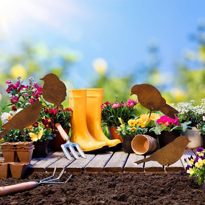 通用 YGDE-2710-V04H Patina Metal Bird Garden Stake with Screw Thread Pack of 4