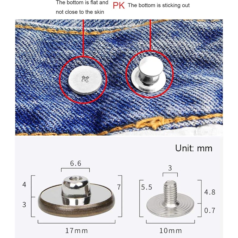 • 🐂Nailless threaded rivets,no sewing needed,no need hammer,just use the screwdriver to screw or unscrew for quick and easy button installation for your jeans, trousers or jacket