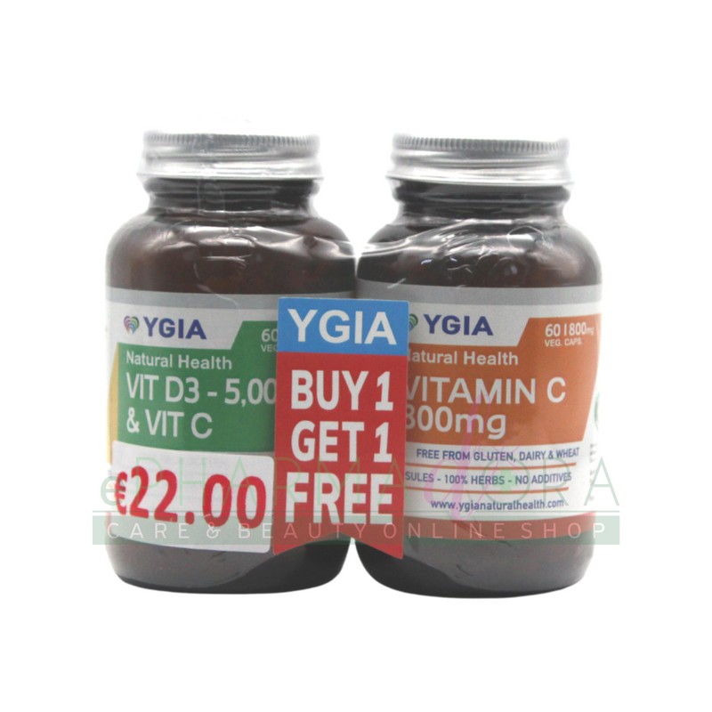 YGIA VIT D3 5000IU & VIT C 60S + YGIA VITAMIN C 800MG 60S FREE