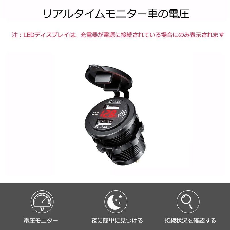 - 【LED Voltage Display】- This car charger socket built into the digital LED voltage monitor, shows the accurate voltage status of your vehicle's battery in real time to prevent problems caused by low voltage, and the LED light can quickly and easily find the USB port in dark or night
