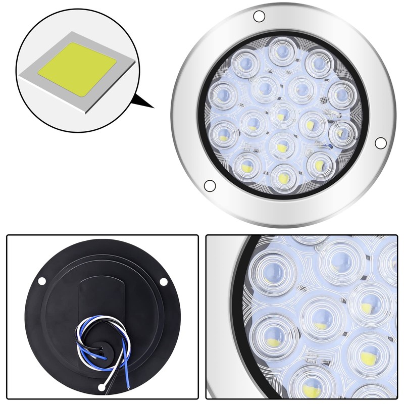 - Size: Diameter 5.5 inches (139 mm) x Depth 1.0 inches (25 mm); Mounting screw diameter: 0.2 inches (6 mm); Voltage: 24 V; LED quantity: 24 pcs; Package Includes: 2 x Truck Tail Lamps