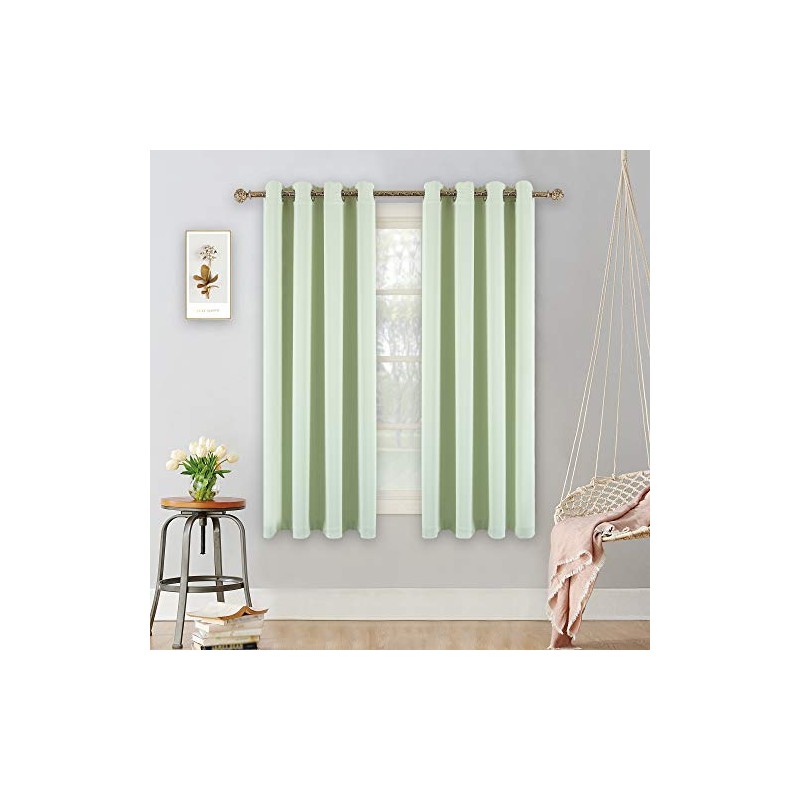 YGO Kids Room Darkening Curtains for Bedroom 63 in Length Nursery Moderate Blackout Curtains for Boys Room Triple Weave Window Curtains Grommet Top Drapes 1 Pair Pea Green