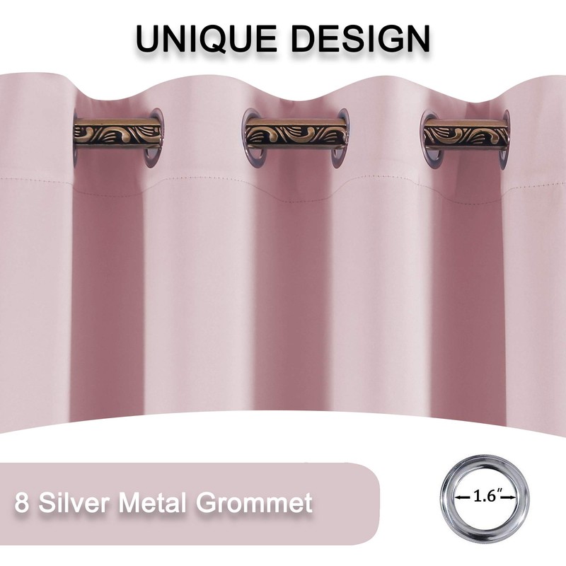 YGO Light Pink Solid Blackout Drapes Room Darkening Pink Themal Insulated Grommet Eyelet Top Nursery Living Room Curtains Each Panel 52W x 72 L Set of 2 Panels