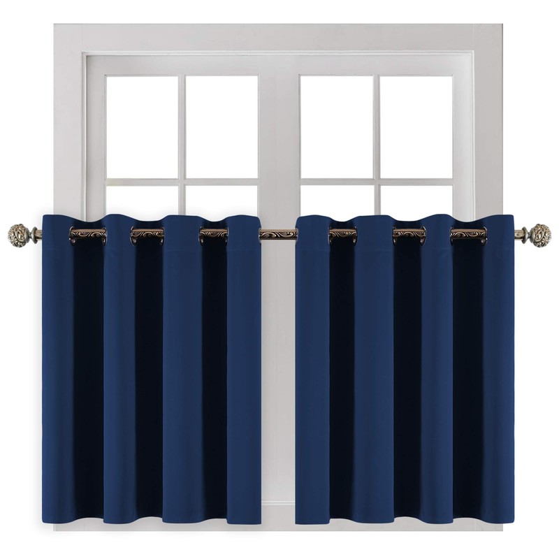 YGO Navy Blue Blackout Curtain Tiers Light Block Energy Saving Drapes Set Blinds Grommet Top Window Valances for Kitchen 52 inch W x 36 inch L 2 Pieces