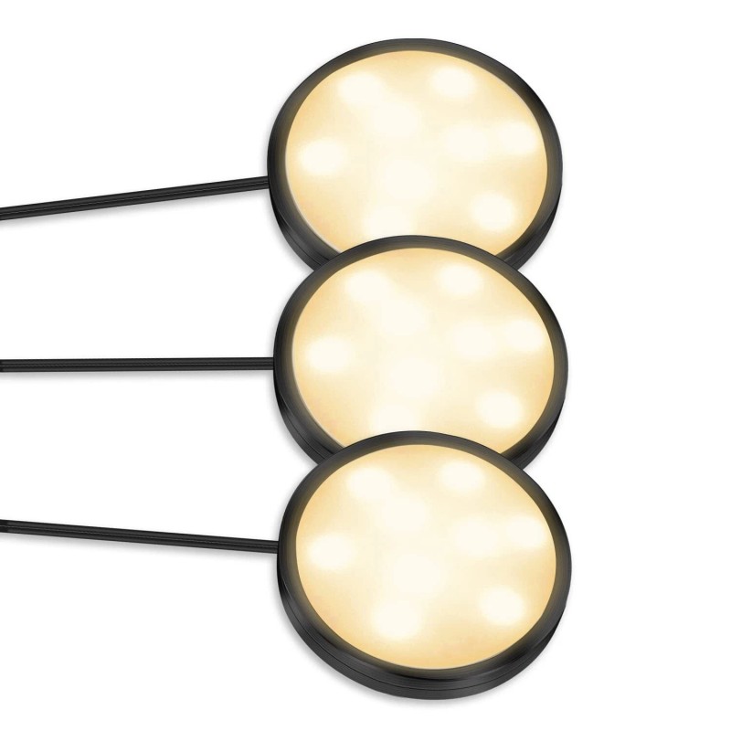 YGS-Tech 3 Pack LED Puck Lights, Under Cabinet Lighting Black Trim, 3000K Warm White, ...