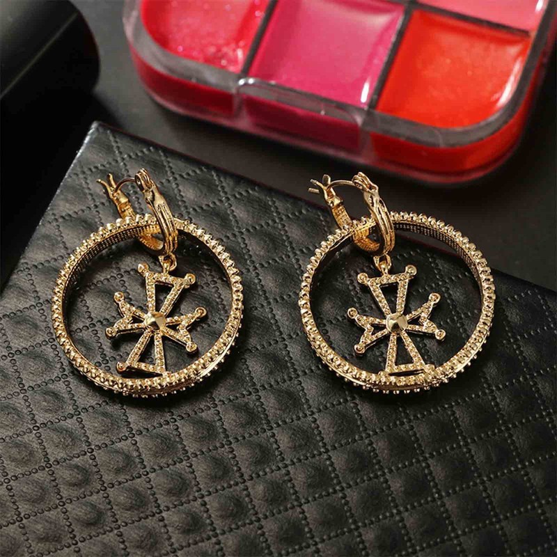 Yheakne Punk Circle Cross Earrings Gold Circle Drop Earrings Brass Geometric Earrings Modern Chunky Drop Earrings Jewellery for Women and Girls Gifts