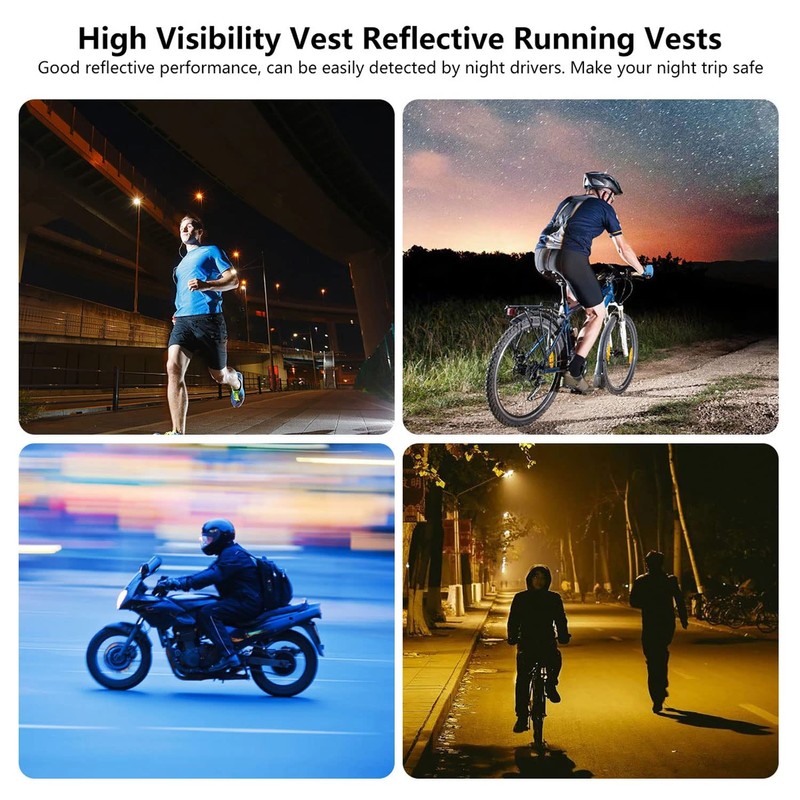 • [ USB Rechargeable High light vest ]== LED light supports USB charging, and the battery life is up to 7-10 hours. The excellent LED light-emitting material can reflect the surrounding light, even in the harsh environment of 1000 feet away, the LED night running equipment can be clearly seen. Even in rainy and foggy weather, its presence cannot be ignored. And has a rainproof function.