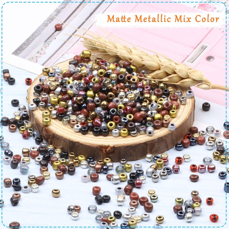 Yholin 10000pcs Glass Seed Beads Bulk,2mm 12/0 Craft Seed Beads Small Pony Beads for DIY Craft Project Bracelet Necklace Jewelry Making - Matte Metallic Mix Color Waist Beads Spacer Beads