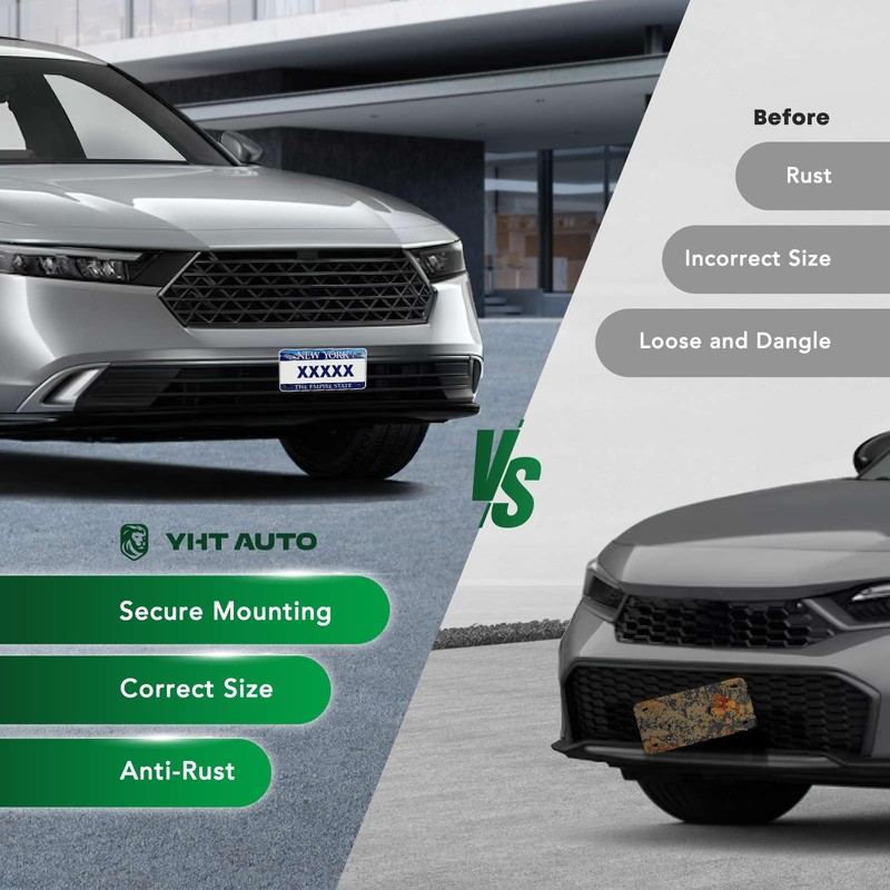 - Better Protection: License plate bracket primarily serve to secure our license plates. The car plate frame cushions the shock, providing additional protection for license plates, reducing the risk of bending, scratching, or damage from road debris