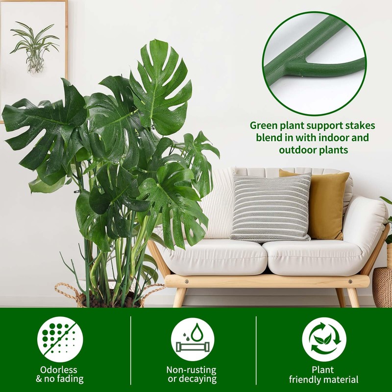 - Perfectly Blend with Plants: The green plant stakes for indoor plants easily integrate with your monstera plants and remain unnoticed, ensuring your houseplants grow healthily and upright. Our plant supports also the best alternative to metal rings, moss poles and bamboo stakes.