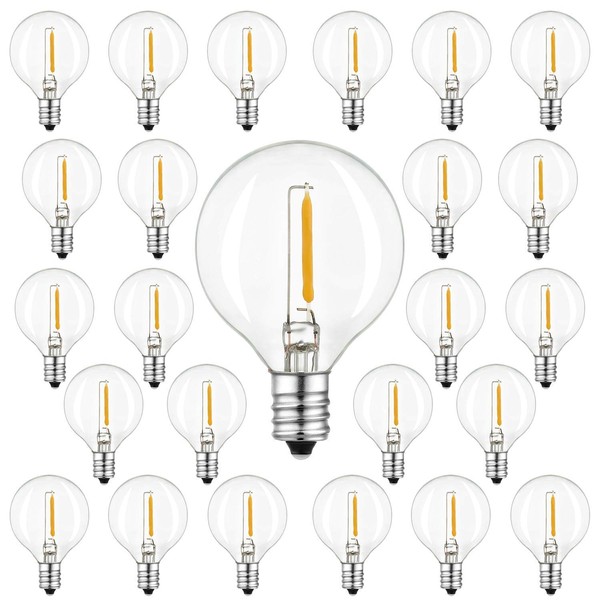 YI LIGHTING Dimmable Clear Globe G40 LED Bulbs Replacement Bulbs E12 C7 Screw for Indoor Outdoor Patio String Lights (Pack of 25)